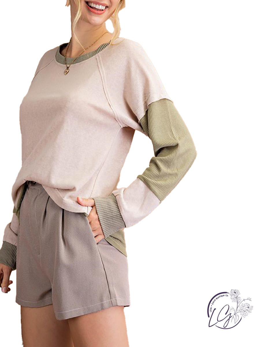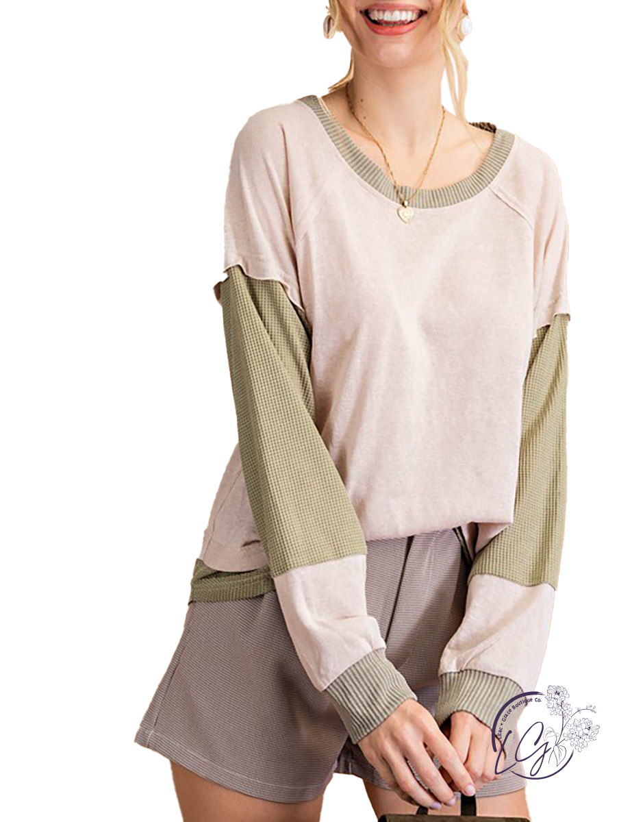 CREW NECK MIX&MATCH LONG SLEEVE TOP 65%COTTON 32%POLYESTER 3%SPANDEX *Weronica is 5ft 7 heights, wearing size S/ 35-24-35